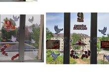 Мәктәп "Җиңү тәрәзәләре" акциясендә катнаша- укучылар тәрәзәләрне Җиңү көненә багышланган символлар белән бизи.