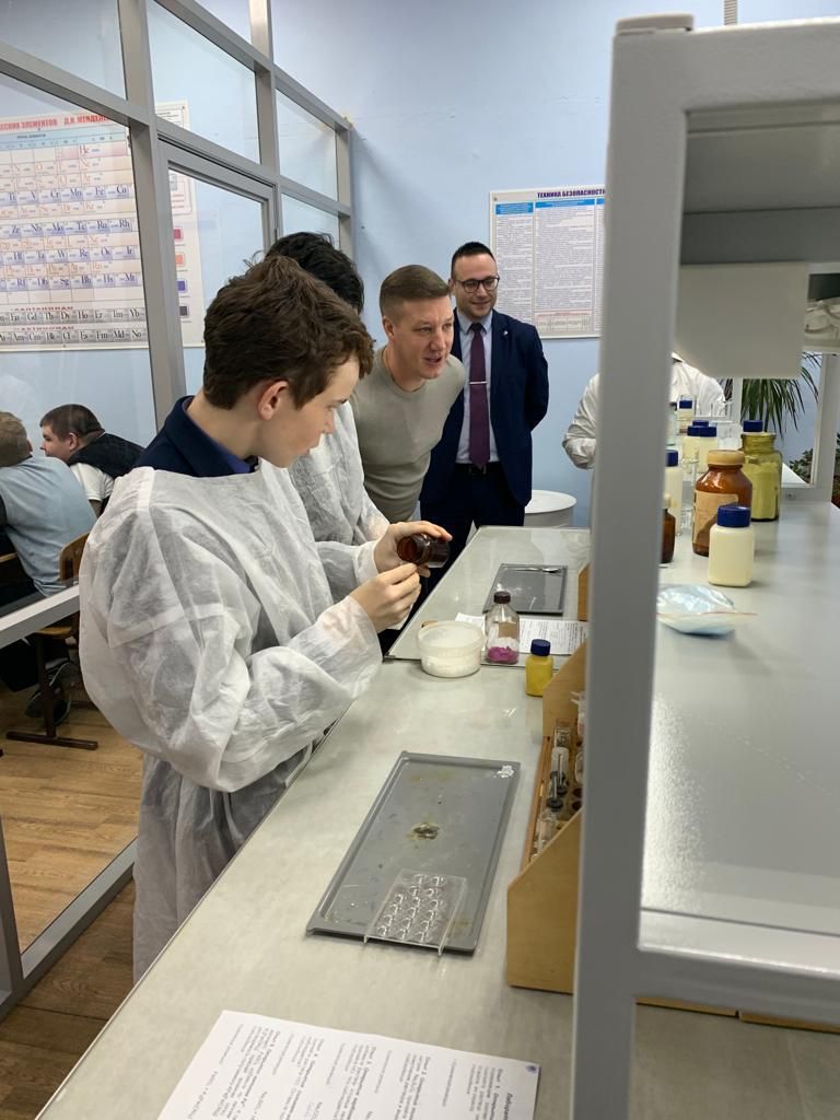 В декабре в кабинете химии была создана практическая зона работы с лабораторными столами. Большой вклад в обновление кабинета внёс депутат Казанской городской думы Чекашов Евгений Андреевич, который с особым вниманием относится к нашей школе. Коллектив, учащиеся и родители благодарят Евгения Андреевича за помощь!