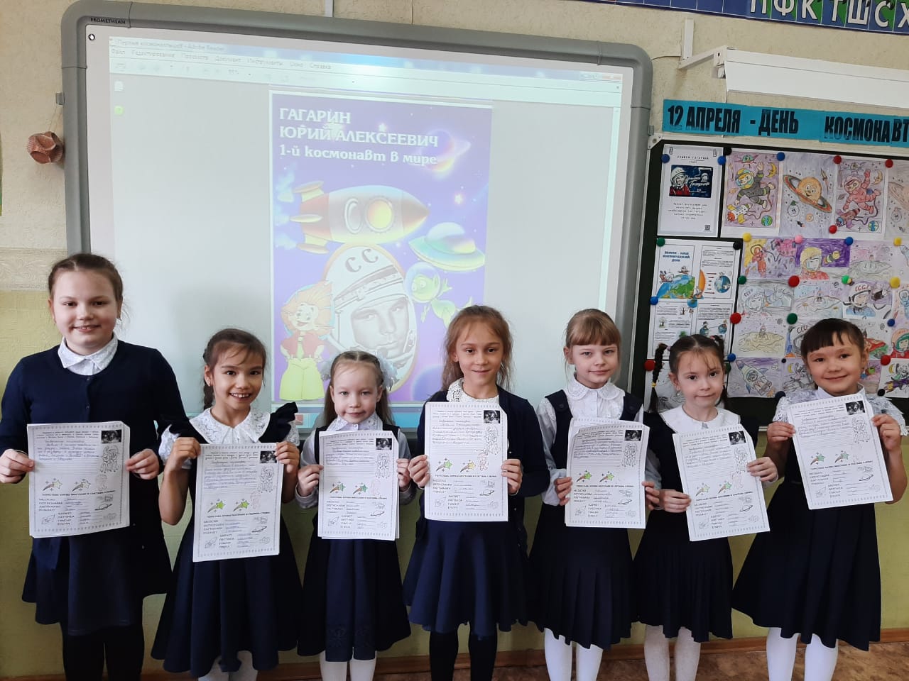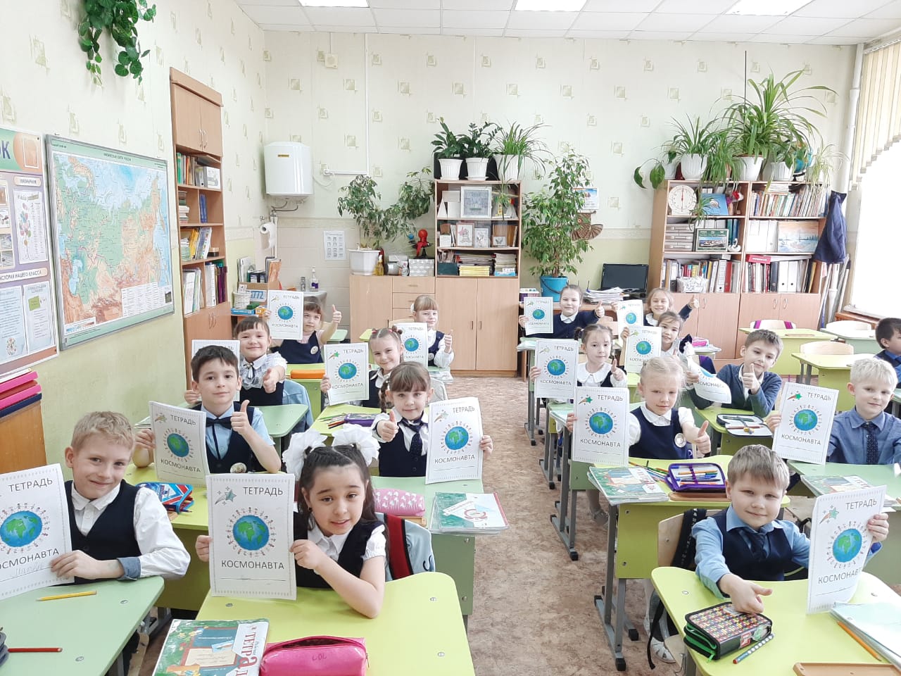 В день Космонавтики ученики 1б класса выполняли интереснейшие развлекательные и познавательные задания в Тетради космонавтов! Задания каждого урока были космические. Ребята традиционно оценивали свою работу звёздочками разного цвета, а самые старательные запустили в полёт мишку! Тетрадь Космонавтов отправится в портфолио. После уроков с удовольствием раскрасили рисунки к текстам и посмотрели мультфильм Белка и Стрелка, поиграли в игры, которые приготовили ребята из ШУС. Сегодня был запоминающийся день!