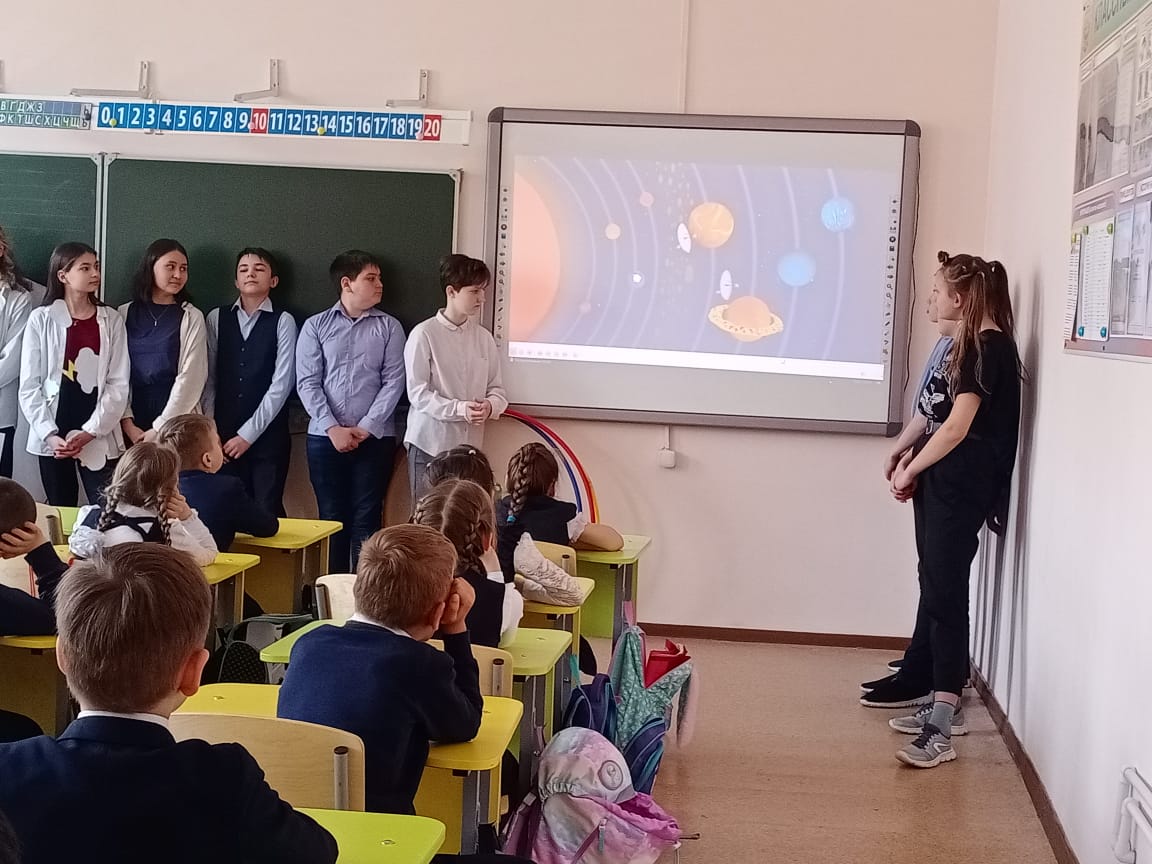 С самого утра сегодня полным ходом идет празднование 60-летия со дня первого полёта человека в космос. В каждом классе ребята в творческой форме и доброжелательной обстановке узнают и вспоминают об этом знаменательном событии ????????????