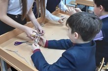 16 декабря ученики 9 б класса провели мастер-класс по изготовлению новогодних игрушек для учащихся 6 а класса.