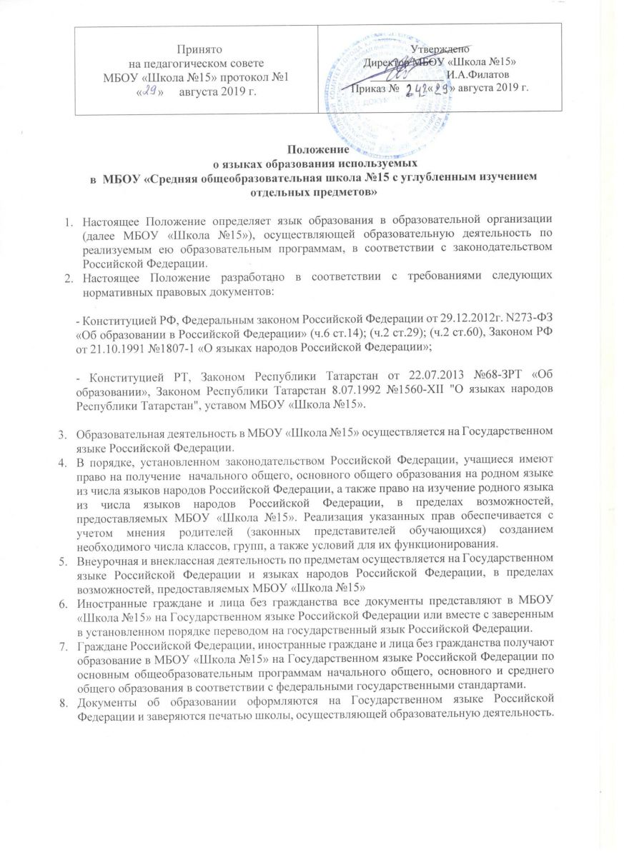 МБОУ «Средняя общеобразовательная школа №15 с углубленным изучением отдельных предметов» Советского района г. Казани