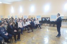 11 декабря в нашей гимназии прошла встреча с представителем МЧС России. Инспектор объяснил ребятам меры безопасности на льду – рассказал, как выглядит прочный лед и как правильно передвигаться по нему, о том, как оказать помощь пострадавшему и что делать, если сам угодил в неприятность. Учащимся также были продемонстрированы обучающие видеоролики о безопасности на водоеме в зимний период. Подводя итоги учебной беседы, инспектор отметил хорошие знания учащихся.