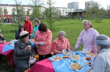 В сквере «Дербышки» прошел праздник «Ветераны нашего двора». У каждой школы была своя площадка. Наша гимназия устроила чаепитие для ветеранов.