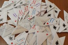 Сегодня ребята написали письма, где выразили слова поддержки и благодарности участникам специальной военной операции. Для солдат письма станут доброй весточкой и очередным напоминаем о том, что их ждут, в них верят. Свои письма учащиеся украсили рисунками и оформили их в виде треугольников.