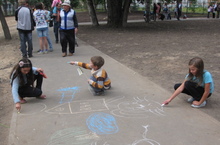 Мы были ответственны за организацию игры по мини-футболу и конкурс рисунков на асфальте.