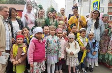 К стенам школы приехала яркая, празднично украшенная конная повозка, а юноши и девушки в национальных татарский костюмах пели и танцевали.