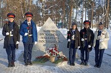 Учащиеся школы - Юнармейцы, кадеты Следственного комитета РТ. Возложили цветы у Памятника «Блокадникам Ленинграда».