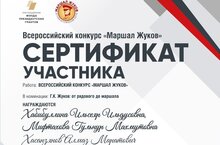 В рамках музейной работы учащиеся здания на Камалеева Хасанзянов Алмаз и Атаханов Санджар (рук. Хабибуллина И. И., Мифтахова Г.М.) приняли участие во Всероссийском конкурсе "Маршал Жуков".