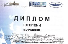 Поздравляем ученицу 8 Б класса Ковтонюк Эмилию (рук. Валиуллина Р.Х., Тарасов И.А.) с дипломом II степени на IX Всероссийской (с международным участием) научной конференции учащихся имени Н.И. Лобачевского, посвященной 220-летию Казанского университета.