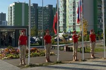 Во дворе школы состоялась церемония поднятия Государственного флага России с прослушиванием гимна.
