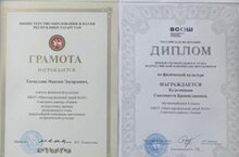 Россиякүләм укучылар олимпиадасының региональ этабы призерлары - 9нчы сыйныф укучысы Салахова Азалия һәм 8нче сыйныф укучысы Кульчицкая Святовиттаны котлыйбыз.