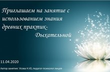 Мы предлагаем Вам занятие с использование знания древних практик-Дыхательной, в комплексе с использованием Мудр.