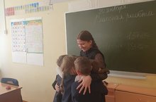 "Замечательный вожатый 2021". Ученица 9 класса Савинова Мария на перемене с учениками начальной школы проводит игры на сплочение и развитие дружбы между одноклассниками. 21.01.2021