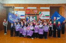 Так же учащимся 1 - 3 классов были повязаны галстуки Орлят(светло сиреневого цвета), а учащимся 4-11 классов и всем наставникам были повязаны красные галстуки(Движение Первых ) -