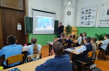 В целях повышения мотивации школьников 10-11 классов к поступлению в вузы Министерства обороны РФ, было организовано подключение к видеоконференции в режиме онлайн с Михайловской военной артиллерийской академией.