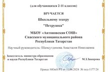 муниципальное бюджетное общеобразовательное учреждение "Антоновская средняя общеобразовательная школа Спасского муниципального района Республики Татарстан"/"Татарстан Республикасы Спас муниципаль районы Антоновка урта гомуми белем бирү мәктәбе" муниципаль бюджет гомуми белем бирү учреждениесе