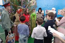 Новогоднее представление в начальной школе. 25.12.2020 28 декабря на празднике у начальных классов царила атмосфера настоящего чуда. В праздничном блеске светилась весёлыми огоньками ёлка-красавица, зрители были в нарядных костюмах, в прекрасном настроении. Все с интересом посмотрели сказку о том, как Леший и Баба Яга украли мешок с подарками, принадлежащий Деду Морозу. Зрители сопереживали героям, и в финале, как и положено, к всеобщей радости, добро победило зло: полицейский поймал лесных воров, возвратил мешок Деду Морозу, а Леший и Баба Яга поняли свою ошибку, попросили у детей прощения, и те их с радостью простили, пригласив поучаствовать в хороводах вокруг ёлки. Администрация школы подготовила всем ребятам сладкие угощения. Также поощрительные сладкие призы получили отличники учебы, победители и призеры конкурсов.