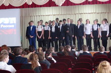БИТВА ХОРОВ «ГИМН РОССИИ» 18.02.2017 В рамках месячника военно-патриотического воспитания и оборонно-массовой работы, сегодня, 18 февраля в нашей школе среди обучающихся 6-7 классов прошел конкурс битва хоров на лучшее знание и исполнение Гимнов Российской Федерации. Конкурс показал, что школьники знают, торжественно исполняют Гимн РФ, но все же в каждом конкурсе есть победители. По итогам жюри в данном конкурсе каждый класс был награжден грамотами по номинациям: 6 А класс грамота в номинации «Самое выразительное исполнение гимна», 6 Б класс грамота в номинации «Самое эмоциональное исполнение гимна», 7 классы награждены грамотами в номинации «Самое оригинальное исполнение гимна».