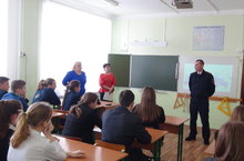 Урок мужества. 03.02.2017 Сегодня, 3 февраля в нашей школе прошел единый классный час посвященный военно-патриотической тематике «Мы будем помнить». Во 2 классы был приглашен папа одного из учеников, выборный атаман Волжских казаков Республики Татарстан Баландин М.А. Михаил Андреевич рассказал детям о том, кто такой патриот, как люди становятся героями и что для этого нужно сделать. Он говорил о любви к Родине, о любви к родителям. Рассказ Михаила Андреевича сопровождался исполнением песен о Родине, о смелости, о героизме. В третьи классы был приглашен подполковник внутренней службы по Спасскому району Лазутин Е.А. Евгений Александрович рассказал о своей длительной командировке в поселке Шамилькала Дагестанской республики, показал фотографии с места дислокации. Ребята слушали с интересом, задавали разные вопросы. В конце классного часа ученики посвятили ему стихотворение. В 4 классы пригласили прапорщика Спасского военкомата Беляева Николая Валентиновича. Он рассказал ребятам о мужском празднике, который приближается в феврале. Рассказал, как зародился этот праздник и плавно перешел к тому, как важна для страны армия. Рассказал о своей службе. Ребята узнали о том, что в армии могут служить не только мальчики, но и девочки. Что для девочек есть привилегии при поступлении в вузы, если они отслужат в армии по контракту 3 года. Ребята задавали ему вопросы про оружие, про танки и ракеты, про маркировку солдат. Николай Валентинович с большим удовольствием отвечал ребятам. А на прощание дети его поблагодарили и сделали фото на память. В 8-классы был приглашен участник боевых действий Тарасов Сергей Геннадиевич, который рассказал ребят о службе в Дагестане, о своей работе, и ответил на вопросы, которые ему задавали во время беседы.