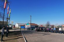 Поднятие флагов 10.04.2023 По традиции утро понедельника начинается с торжественных мероприятий: прослушивание гимнов Российской Федерации, Республики Татарстан и поднятие флагов Российской Федерации, Республики Татарстан, флага района. В церемонии поднятия флагов приняли учащиеся 6а,6б, 8б классы, Юнармейцы школы, директор и педагоги школы. Право поднять Государственный флаг Российской Федерации представилось Михайлову Савве, флаг Республики Татарстан – Сафину Салавату, флаг района – Шамаеву Станиславу. Затем ребята прошли в школу, где для них учебная неделя началась с классного часа «Разговор о важном».
