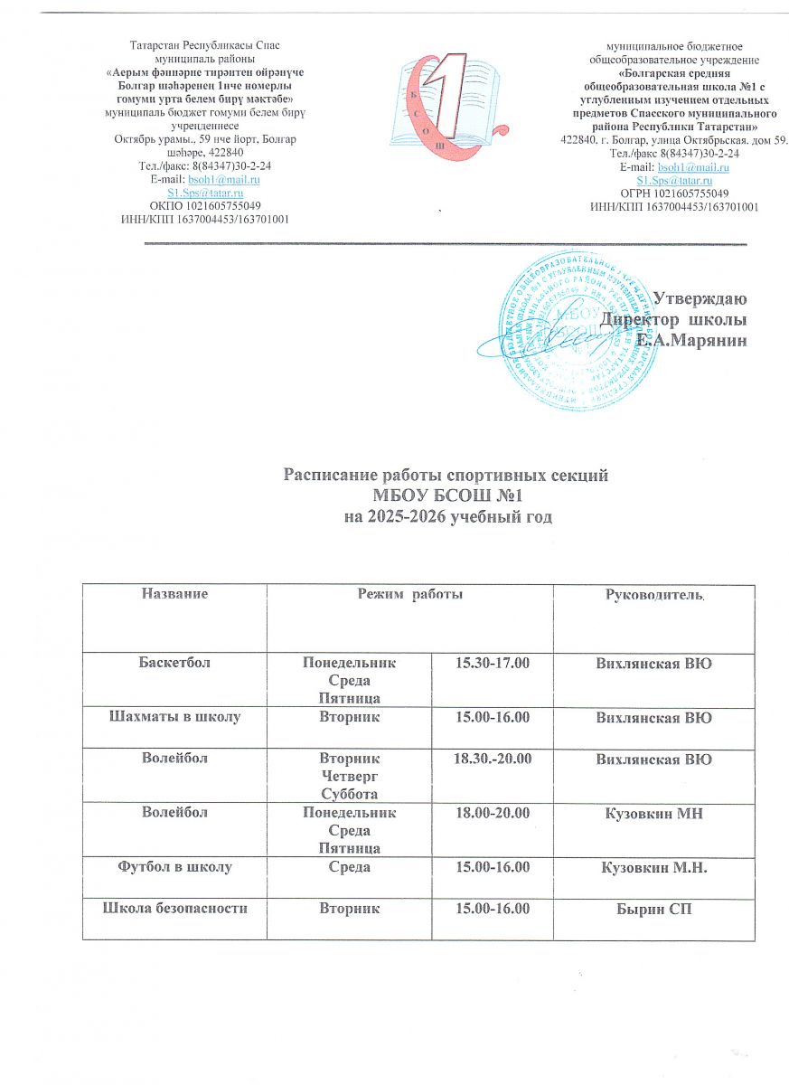 муниципальное бюджетное общеобразовательное учреждение "Болгарская средняя общеобразовательная школа №1 с углубленным изучением отдельных предметов Спасского муниципального района Республики Татарстан"/"Татарстан Республикасы Спас муниципаль районы аерым фәннәрне тирәнтен өйрәнүче Болгар шәһәренең 1нче номерлы гомуми урта белем бирү мәктәбе" муниципаль бюджет гомуми белем бирү учреждениесе