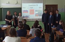 3 февраля в рамках Месячника военно – патриотического воспитания школьным педагогом – библиотекарем Абдрахмановой АЕ был проведен библиотечный урок «Символы России» среди 7-11 классов.