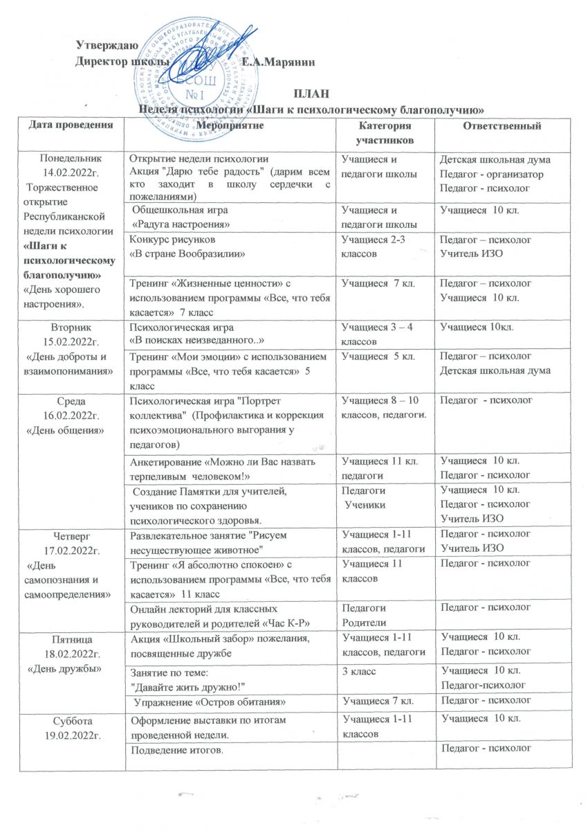 План Неделя психологии