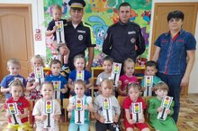 6 сентября в рамках Месячника безопасности детей для воспитанников МБДОУ «Детский сад «Колосок»» г. Болгар, была организована встреча с сотрудниками ГИБДД (Начальник отделения ГИБДД отдела МВД России по Спасскому району старший лейтенант полиции Сафиуллин Р.Р. и старший лейтенант полиции Осинцев Р.В.) в средней группе проведено занятие «Веселый светофорик». Сотрудники ГИБДД продемонстрировали ребятам патрульный автомобиль. В ходе встречи ребятам рассказали о том, как правильно вести себя на дорогах, пешеходных переходах и в общественном транспорте,о детских удерживающих устройствах для автотранспорта и необходимости их использования.