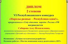 Наш педагог Сабирова Алсу Исмагиловна получила диплом 2 степени!