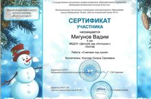 Наши воспитанницы средней группы Каргина София и Токарева Кира получили сертификаты участника. Педагог Маслова Анастасия Александровна.
