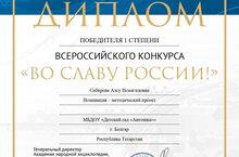 Наш педагог Сабирова Алсу Исмагилловна получила диплом 1степени.