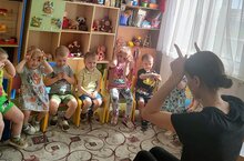Сегодня в младшей группе с детьми играли в пальчиковые игры и читали потешки "Ладушки", "Идёт коза рогатая", "Пальчик, где ты был?"