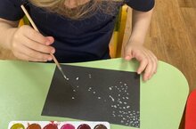В средней группе педагог Сабирова Алсу Исмагилловна со своими воспитанниками поговорила о космосе, а также нарисовали "Звездное небо".