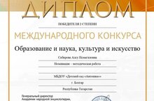 Наш педагог Сабирова Алсу Исмагилловна получила диплом 2 степени!