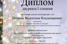 Наш педагог Петрова Валентина Владимировна получила диплом лауреата 1 степени за публикацию сценария новогоднего утренника.