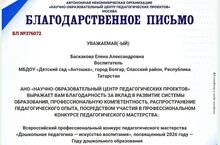 Наш педагог Баскакова Елена Александровна получила Благодарственное письмо!