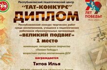 Наш воспитанник Титов Илюша занял 1место за участие в Республиканском конкурсе чтецов. Педагог Петрова Валентина Владимировна.