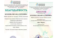Наш педагог Козлова Оксана Сергеевна и её воспитанница Козлова Елизавета получили дипломы. Лиза диплом за 1 место, Оксана Сергеевна Благодарность педагогу за подготовку.