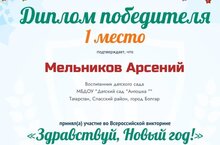 Наш воспитанник Мельников Арсений принял участие во Всероссийской викторине и получил диплом победителя. Педагог Баскакова Елена Александровна.