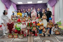 В гостях у ребят были Глава Спасского муниципального района Мухаметов Ф.В., начальник отдела образования Ермилин А.Н., которые выступили с новогодними поздравлениями. Фаргат Вагизович вручил детскому саду, в лице заведующей Шалашовой Г.В., новогодний подарок – сертификат на сумму 10 тысяч рублей на приобретение игрового оборудования. А от Дедушки Мороза все дети получили новогодние подарки со сладостями, которые помогли раздавать и гости.