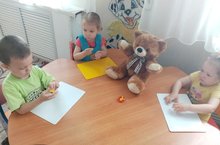 Сегодня в первой младшей группе прошло знакомство с пластилином, а также малыши слепили " Печенье для мишки". Педагог Петрова Валентина Владимировна.