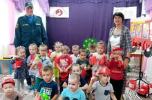 Сегодня в нашем детском саду в рамках месячника безопасности детей провели встречу с сотрудниками ПЧ-132, начальник караула