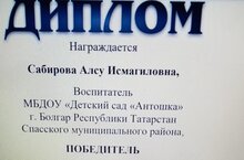 Наш педагог Сабирова Алсу Исмагилловна приняла участие во Всероссийской олимпиаде по экологическому воспитанию детей дошкольного образования и получила диплом победителя!!!