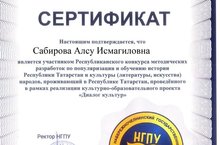 Наш педагог Сабирова Алсу Исмагилловна получила сертификат участника Республиканского конкурса методических разработок !