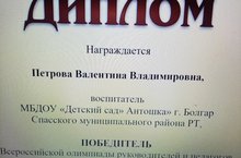 Наш педагог Петрова Валентина Владимировна приняла участие во Всероссийской олимпиаде по экологическому воспитанию детей дошкольного образования и получила диплом победителя!!!