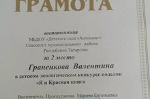 Наша воспитанница Гранёнкова Валентина заняла второе почётное место в конкурсе поделок " Я и Красная книга"!!!! Педагог Проскурякова Марина Евгеньевна!!!