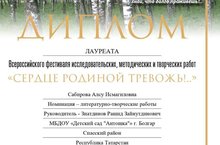 Наш педагог Сабирова Алсу Исмагилловна стала участником Всероссийского фестиваля исследовательских, методических и творческих работ " Сердце Родиной тревожь!..." Поздравляем !!! Молодец!!! Так держать!!!!