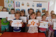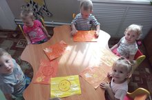 В младшей группе " Капельки" прошло рисование в нетрадиционной технике - рисование ладошками. Дети поговорили о солнышке, а затем нарисовали