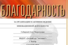 Наш педагог Сабирова Алсу Исмагилловна получила диплом благодарности за организацию и активное ведение инновационной деятельности. Поздравляем! Так держать!